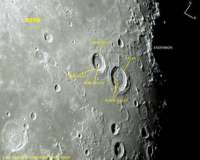 No quadrante nordeste da Lua, localizam-se um par de proeminentes crateras de impacto: Atlas e Hercules.