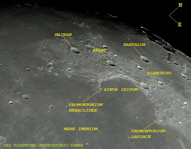 SINUS IRIDUM– baia com 236 Km de diâmetro. Lat: 44.1º N Long: 31.5º W.