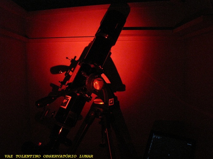 O Telescópio Refrator ORION EON 120mm ED APO do Vaz Tolentino Observatório Lunar, em ação na madrugrada de ontem, 11/02/2011. Por ser um APOCROMÁTICO de qualidade, sua imagem cristalina, ou como diz o meu amigo João Marcos, imagem "fincada", proporciona belas visões e ausência de aberração cromática, além de permitir a aplicação de aumentos maiores com qualidade.