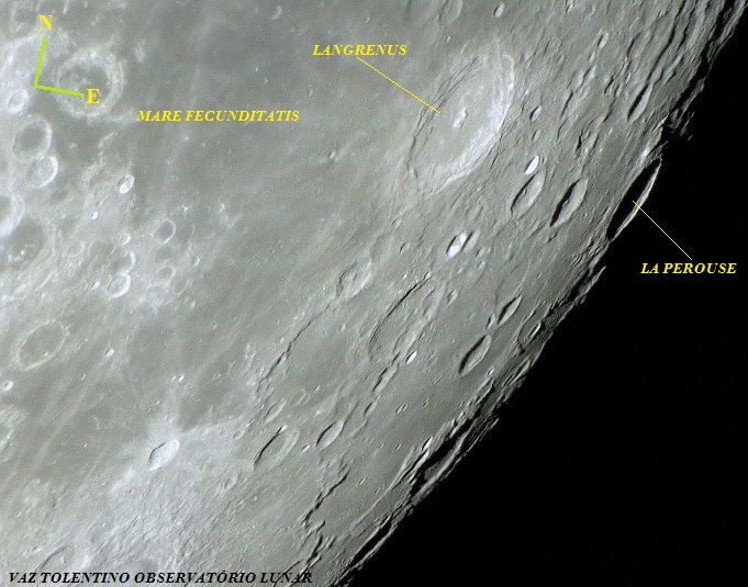 LANGRENUS - diâmetro: 127 Km (79 milhas), Lat: 8.9º S Long: 61.1º E.