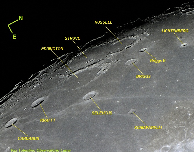 SELEUCUS - diâmetro: 44 Km <> profundidade: 1.2 Km <> Lat: 21,0o N Long: 66.6o W;