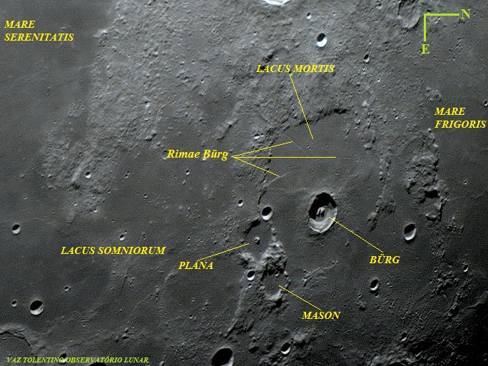 A área sudoeste de Lacus Mortis contém um extenso e delicado sistema de sulcos ou canais (rilles), do tipo linear, que cortam o seu piso de lava, designados como Rimae Bürg.