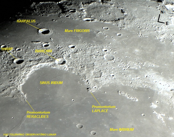 SINUS IRIDUM– baia com 236 Km de diâmetro. Lat: 44.1º N Long: 31.5º W.