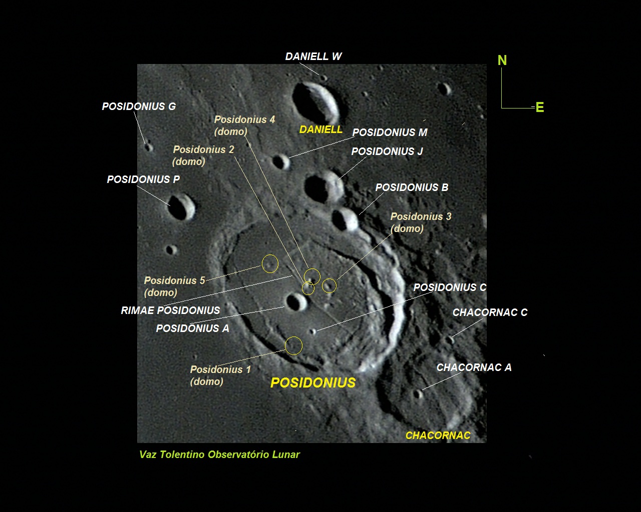 POSIDONIUS – Lat: 31.8° N, Long: 29.9° E, diâmetro: 95 Km, profundidade: 2.3 Km.