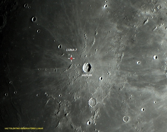A nave espacial Luna 7 foi projetada para executar um pouso suave na superfície da Lua. No entanto, devido à falha nos retrofoguetes, a nave espacial colidiu em alta velocidade contra a superfície lunar, no Oceanus PROCELLARUM, em 07 outubro de 1965, às 22h08m UT, nas coordenadas selenográficas LAT: 09° 48′ 0″ N, LON: 47° 48′ 0″ W, próximo à cratera KEPLER (cerca de 50 Km a noroeste de KEPLER). Com isso, a missão durou apenas 3 dias.