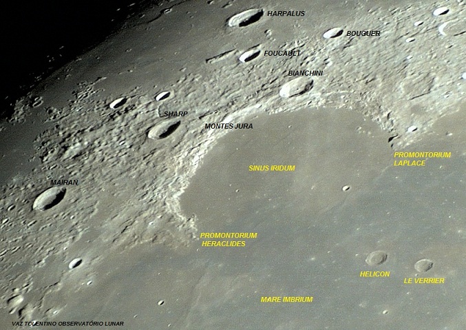 SINUS IRIDUM– baia com 236 Km de diâmetro. Lat: 44.1º N Long: 31.5º W.
