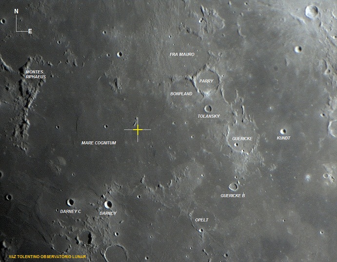 Local de Impacto: O impacto ocorreu 16 Km fora do ponto planejado, nas coordenadas selenográficas: LAT: 10.35° S, LON: 20.66° W.