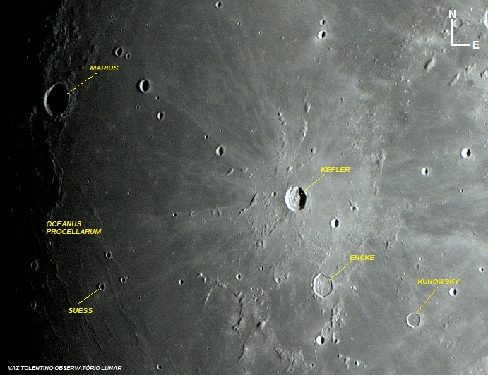 A cratera de impacto Kepler que é relativamente jovem (1 bilhão de anos), tem 2,6 Km de profundidade e localiza-se próximo ao equador lunar, entre o Oceanus Procellarum (do lado oeste) e o Mare Insularum (do lado leste).