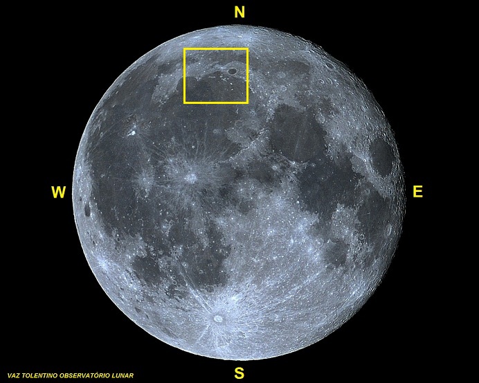 Coordenadas Selenográficas: Lat: 51.6º N  Long: 9.4º W.