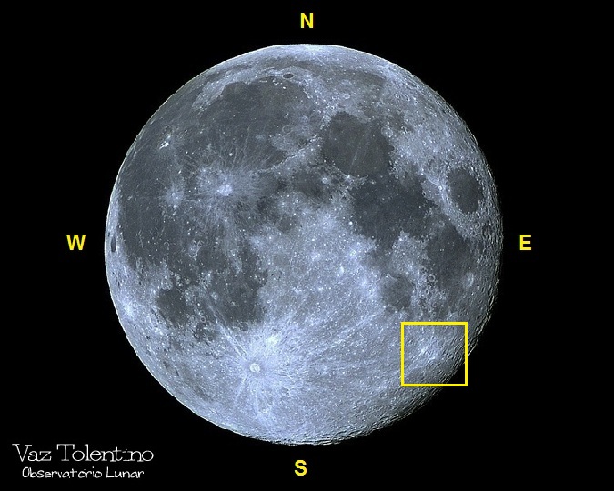 Coordenadas Selenográficas: Lat: 34.2° S, Long: 49.1° E