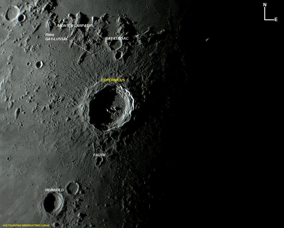 Cratera COPERNICUS– Cratera com 93 Km (58 milhas) de diâmetro externo.