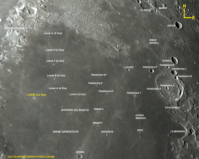 Existe na região de lavas negras do Mare Serenitatis, uma linha norte-sul de jovens e minúsculas crateras de impacto, conhecidas como a Família LINNÉ. São elas: Linné G, H, F, B e A. Nessa cadeia de pequeníssimas crateras em forma de linha reta, Linné F e B são um pouco maiores com cerca de 5 Km de diâmetro cada uma.