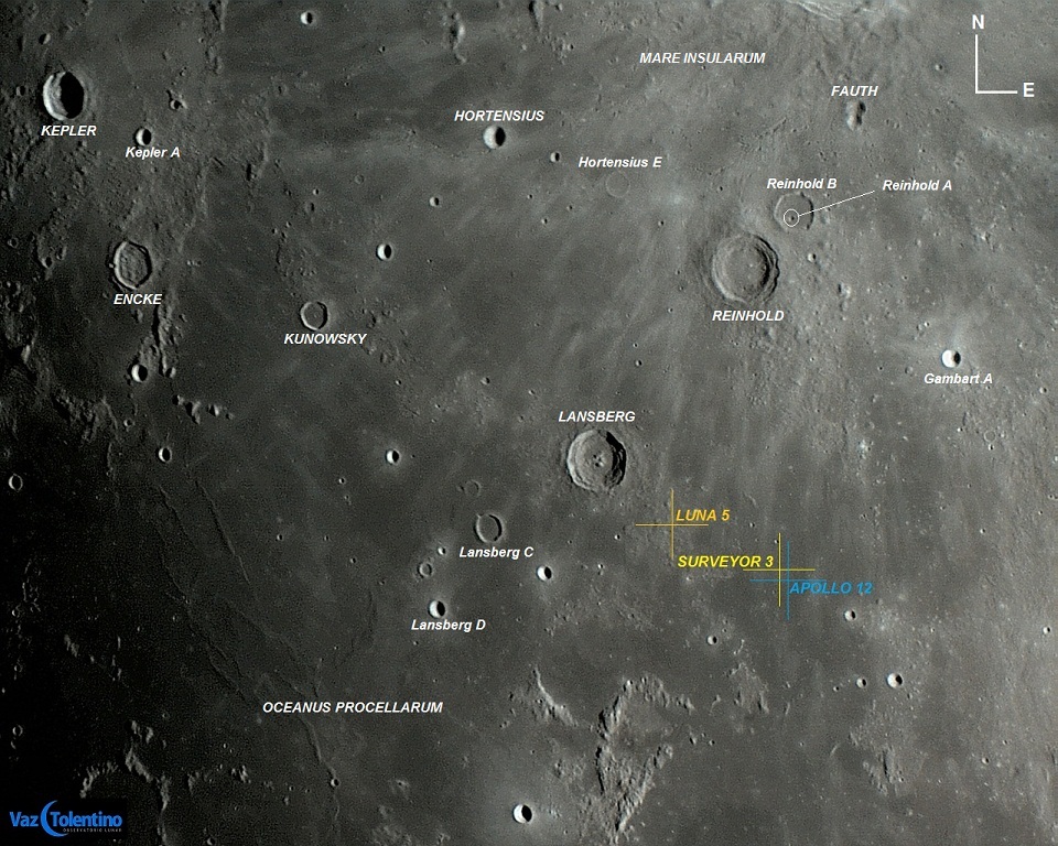 Região visitada pelas Sondas LUNA 5, SURVEYOR 3 e pela Missão Tripulada APOLLO 12.