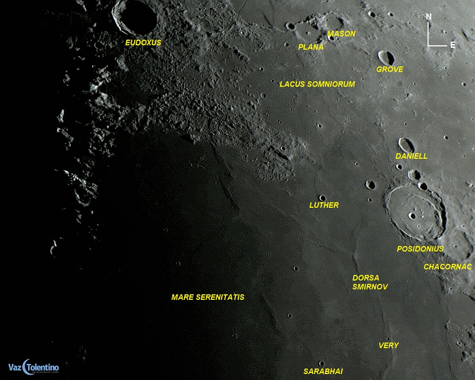 Coordenadas Selenográficas: Lat: 31.8° N, Long: 29.9° E. diâmetro: 95 Km, profundidade: 2.3 Km.