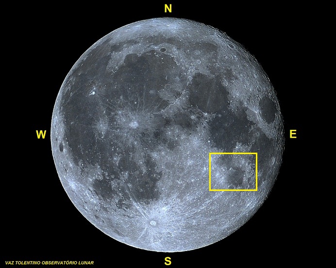 Melhor período para observação: 5 dias após Lua Nova ou 4 dias após Lua Cheia.Foto no Mapa: LAC 78 e LAC 96.