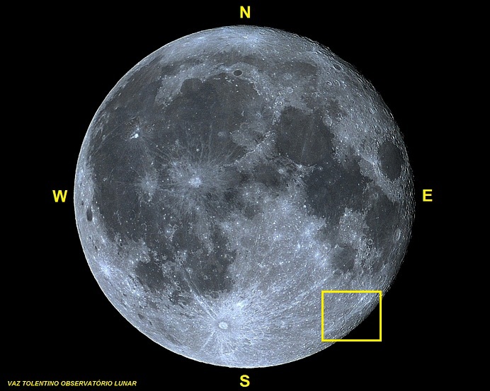 Coordenadas Selenográficas: LAT: 34.2° S, LON: 49.1° E