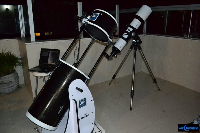 O Refletor Dobsoniano 12 polegadas e o Refrator 6 polegadas em ação.