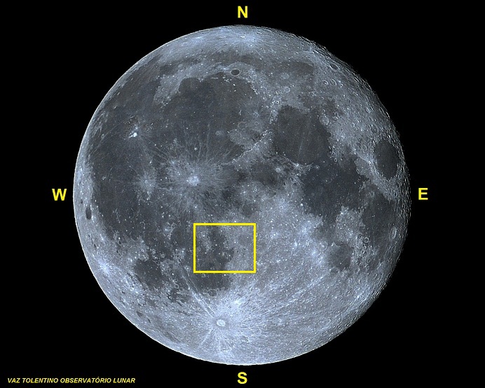 Coordenadas Selenográficas: Lat: 11.0° S, Lon: 7.0° W;