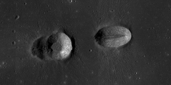 As crateras MESSIER e Messie A possuem forma elíptica, com o maior eixo de MESSIER estendendo-se ao longo da direção de seu impacto inicial.