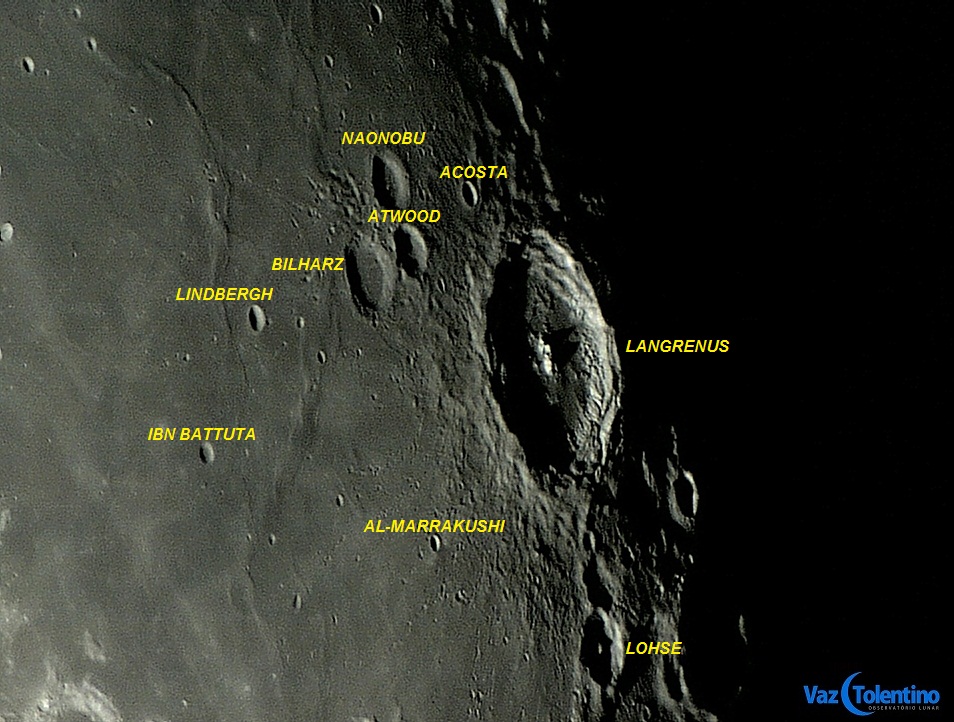 Posicionadas a noroeste de Langrenus existem 3 crateras menores, bem próximas, que formam um triângulo. São elas: Bilharz (diâmetro: 43 Km (27 milhas), Lat: 5.8º S Long: 56.3º E), Atwood (diâmetro: 29 Km (19 milhas), Lat: 5.8º S Long: 57.7º E) e Naonobu (diâmetro: 34 Km (21 milhas), Lat: 4.6º S Long: 57.8º E).