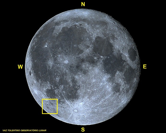 Coordenadas Selenográficas: Lat: 44° 24′ 00″ S, Lon: 54° 36′ 00″ W.