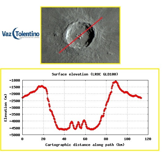 Analisaremos também a cratera ARISTILLUS, com seu perfil e suas cotas, a partir de um corte de uma linha imaginária, na direção Sudoeste-Nordeste.