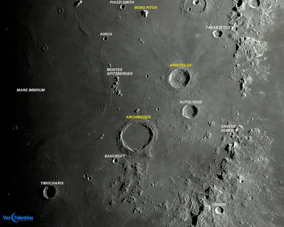 Constatamos também que os números oficiais de diâmetro e profundidade para as duas crateras (ARCHIMEDES: 83 Km e 2,1 Km; ARISTILLUS: 55 Km e 3,6 Km) diferem um pouco do que apresenta os desenhos dos perfis das mesmas, com as cotas de distância cartográfica e elevação.
