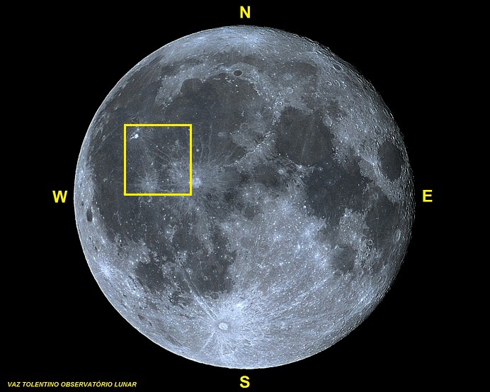 Coordenadas Selenográficas: LAT: 8.1º N, LON: 38.0º W.