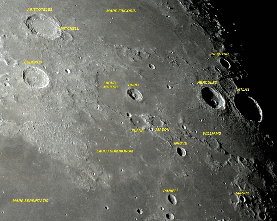 Lacus SOMNIORUM (lago dos sonhos) é uma formação irregular de bordas mal definidas, com ampla superfície de lava basáltica escura (baixo albedo) que hospeda algumas minúsculas crateras de impacto e ocupa cerca de 70.000m2.