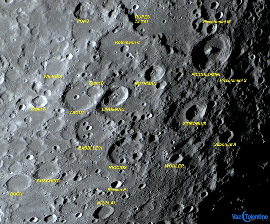 Piccolomini é uma destacada cratera de impacto localizada no setor sudeste da Lua, com 88 Km de diâmetro e 4,5 Km de profundidade .