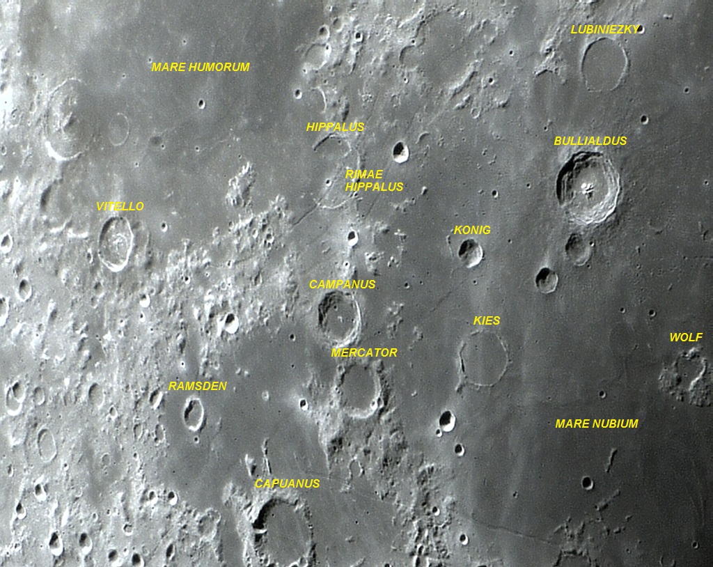 Apesar de seu pequeno tamanho, Bullialdus é muito fácil de ser encontrado, localizado de forma destacada no Mare NUBIUM.