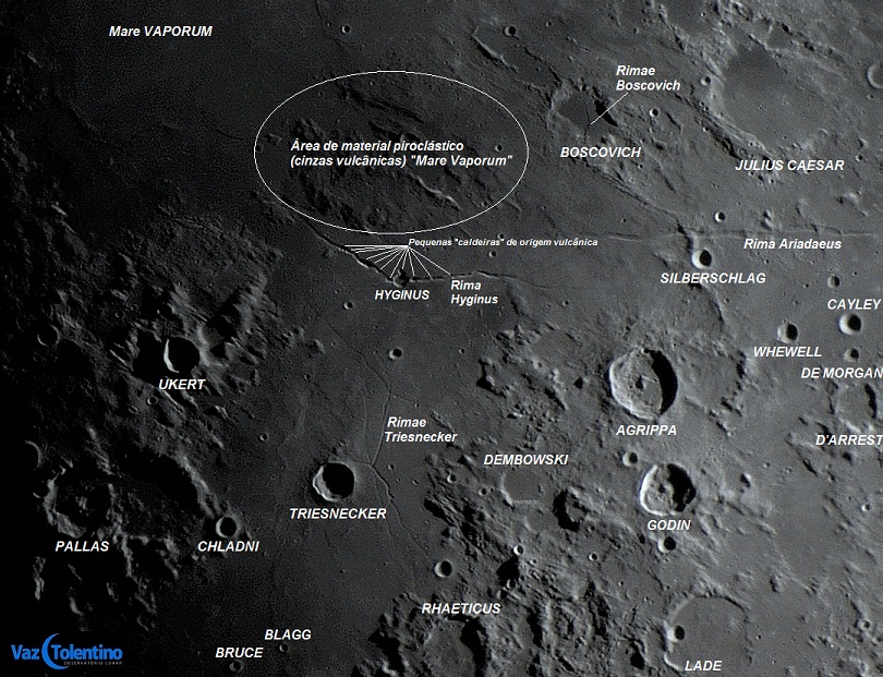 Existe a possibilidade de ter ocorrido uma erupção explosiva associada com o desabamento ou colapso que criou a cratera Hyginus. A pista reside na presença de material escuro na superfície circundante de Hyginus, caracterizando a presença de material piroclástico (cinzas vulcânicas).