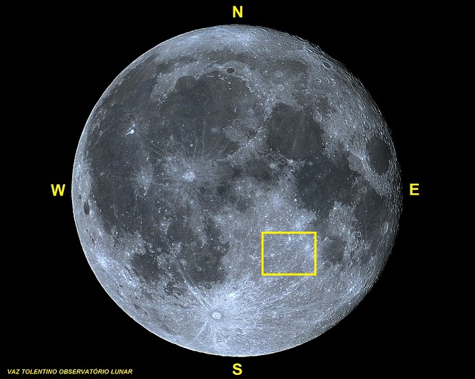 Coordenadas Selenográficas: LAT: 16.61°S, LON: 16.68°E;