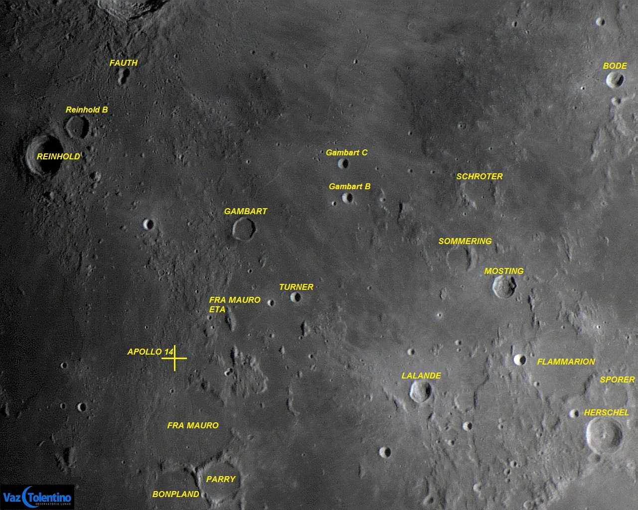Apollo 14 foi o terceiro pouso tripulado na Lua. O módulo lunar pousou às 09:18:11 UT do dia 05 de fevereiro de 1971, nas coordenadas selenográficas LAT: 03°40'24"S, LON: 17°27'55"W