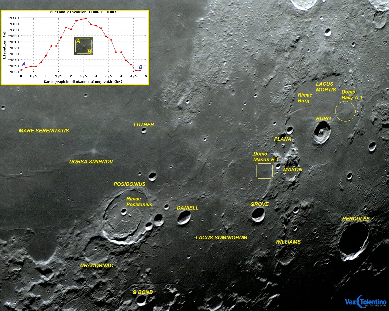 Mason B 1 é um escudo ou domo vulcânico, com 900 m de altitude e dimensões na base de aproximadamente 9 Km X 4,5 Km. O domo Mason B 1 está localizado a cerca de 38 Km ao sul da cratera MASON (diâmetro: 33 Km, profundidade: 1,4 Km) na região do Lacus SOMNIORUM (coordenadas selenográficas – LAT: 40o 55’ N e LON: 29o 40’ E), a nordeste do Mare SERENITATIS.