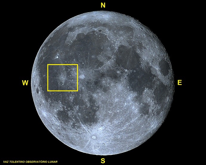 Este notório impacto, com cerca de 1 bilhão de anos, destaca-se no quadrante noroeste lunar, perto do equador, como se fosse uma ilha na grande bacia do Oceanus Procellarum.