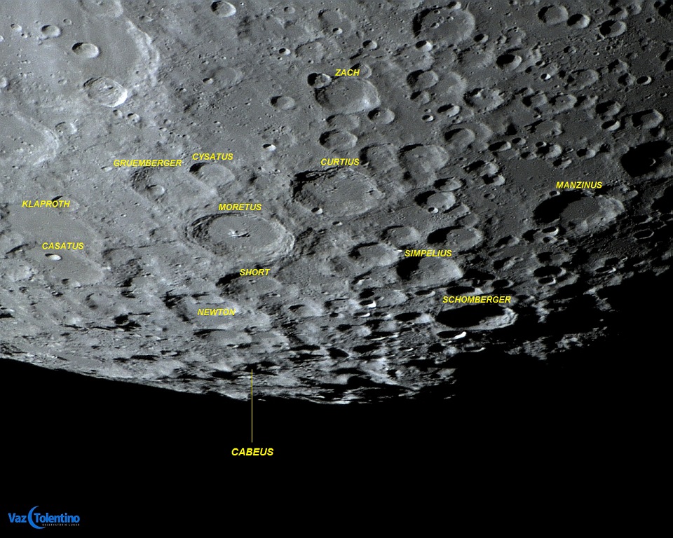Coordenadas selenográficas: LAT: 84° 54′ 00″ S e LON: 35° 30′ 00″ W.