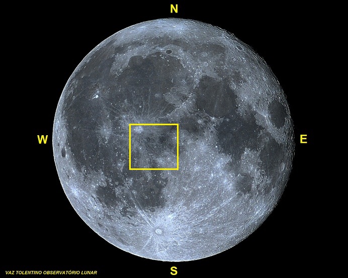 Coordenadas Selenográficas: LAT: 2.3º S, LON: 15.5º W.