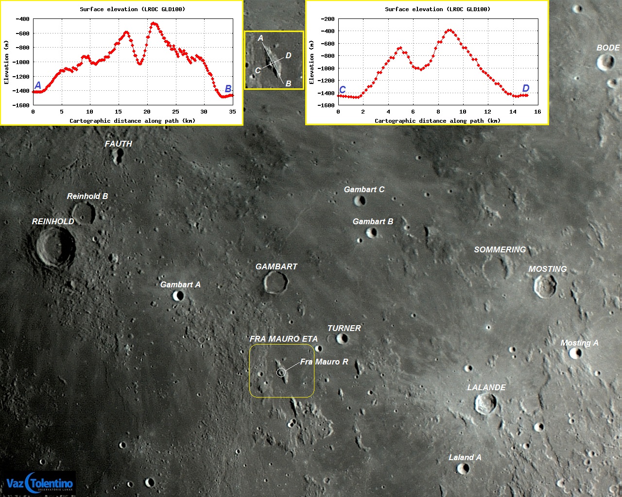 Fra Mauro ETA é uma montanha pouco estudada. Posiciona-se longitudinalmente orientada na direção Norte-Sul.
