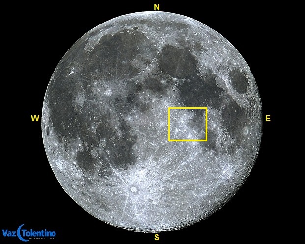 Coordenadas Selenográficas: LAT: 08° 00′ 00″ S, LON: 18° 54′ 00″ E;