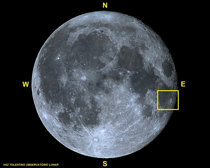 Coordenadas Selenográficas: LAT: 08° 54′ 00″ S, LON: 60° 54′ 00″ E;