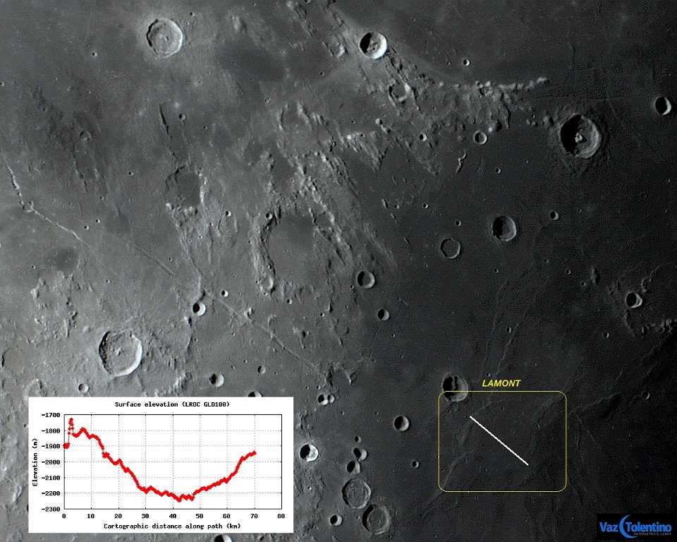 Foto: A cratera fantasma LAMONT, catalogada pela IAU, com seu perfil altimétrico. Foto executada com apenas 1 frame pelo VTOL.