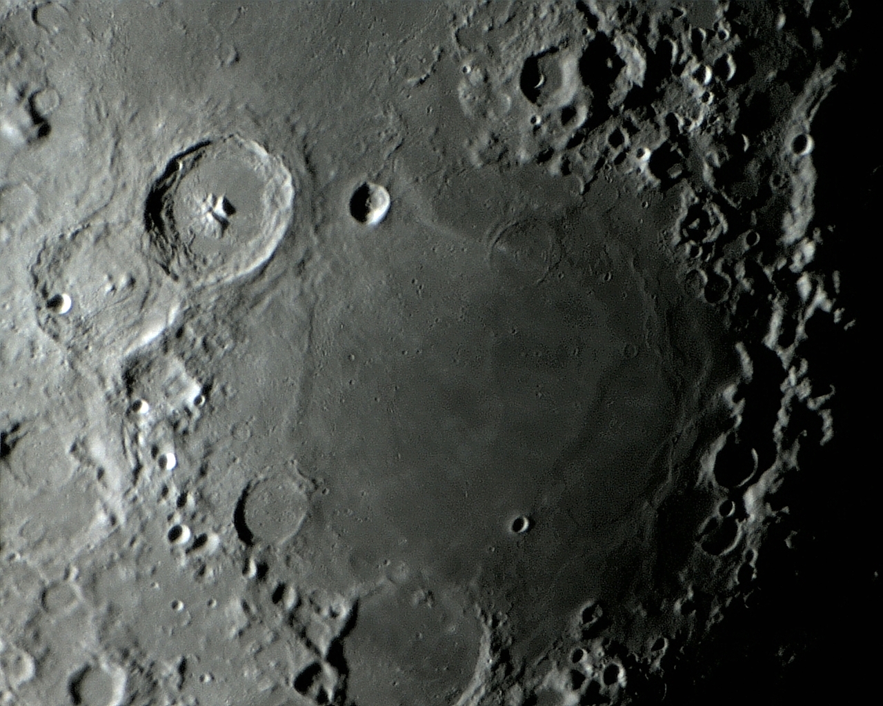 Esses tipos de formações são crateras cujas paredes foram rompidas e grandes volumes de lava dos mares escorreram para dentro delas. Nesses casos, a lava desce pela encosta interna da cratera até seu piso, cobrindo o pico central, podendo até encher a cratera por inteiro. Em alguns casos, apenas uma pequena parte do aro superior da cratera permanece acima da lava solidificada.