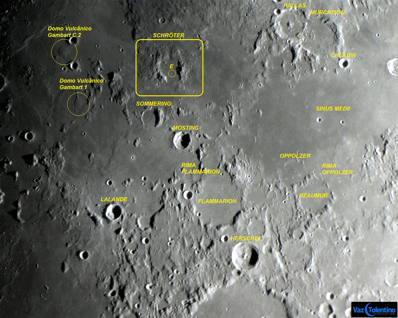 A cratera que homenageia o selenógrafo alemão SCHRÖTER.