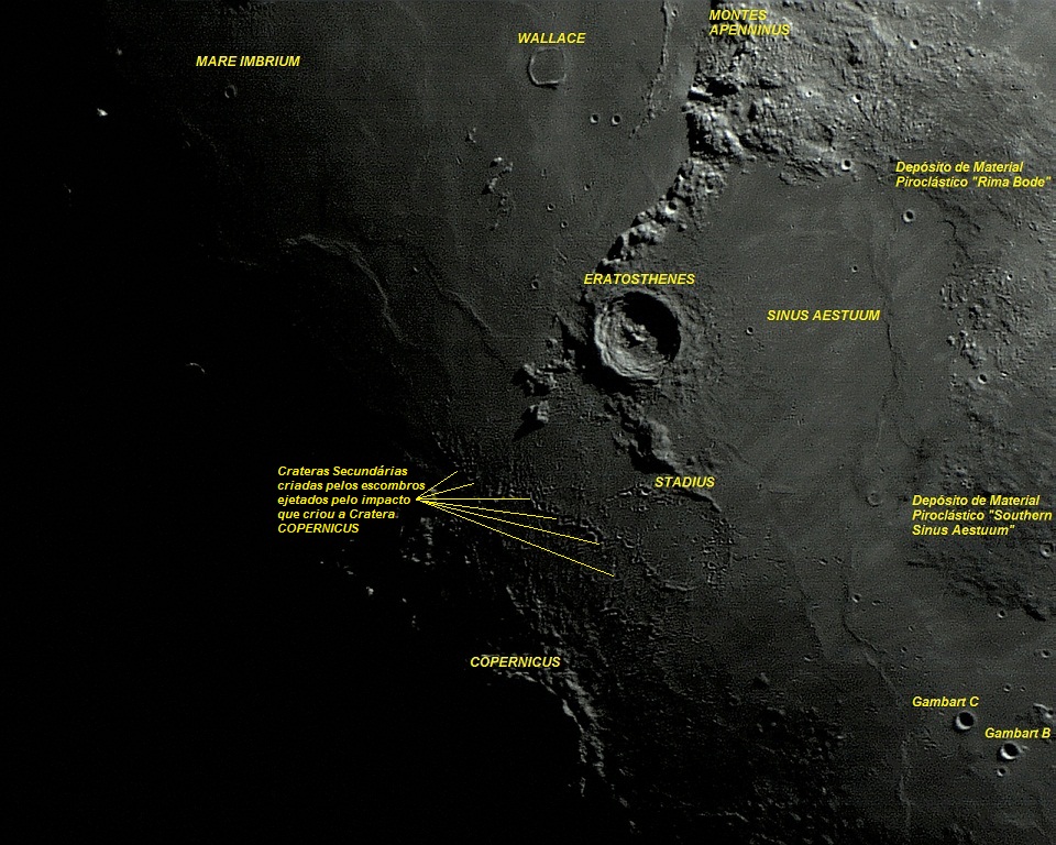 Período Geológico Lunar: Eratostheniano (Eratosthenian): de 3,2 bilhões até 1,1 bilhão de anos atrás.