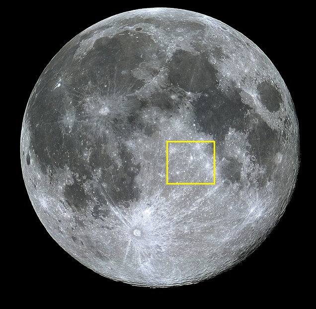 Foto: Lua cheia mostrando a abrangência da foto principal. Foto da Lua cheia por VTOL.