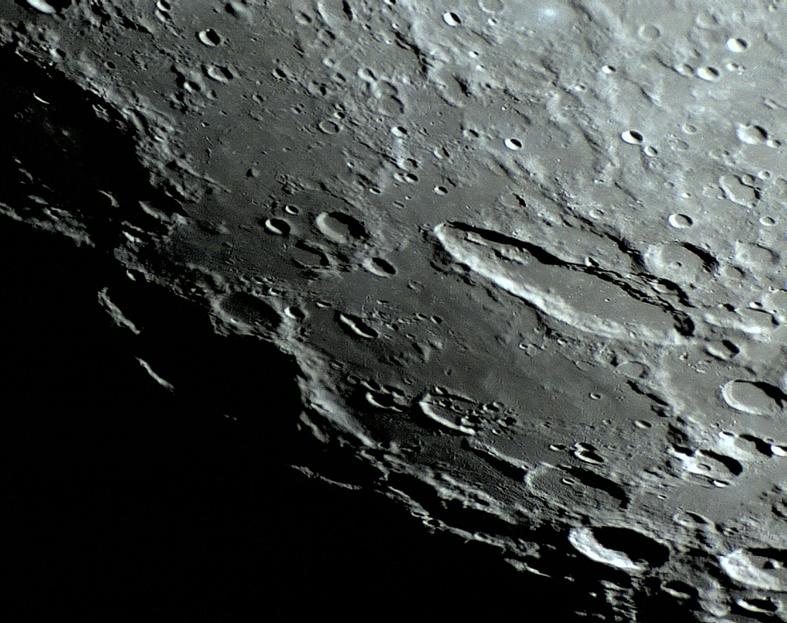A cratera SCHILLER parece ter sido criada pela aglutinação, fusão ou sobreposição de três ou mais crateras, que perderam as paredes fronteiriças entre elas.