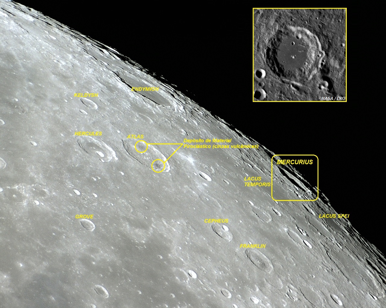 Imagem: Lua cheia mostrando a abrangência da foto enfocando a cratera MERCURIUS - VTOL.