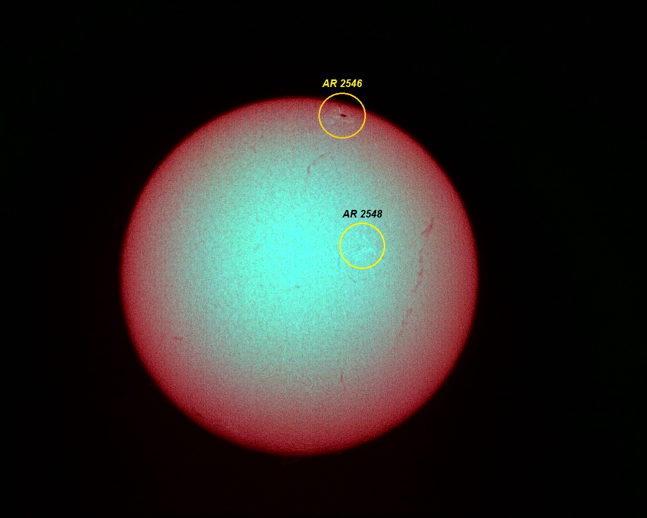 Durante alguns dias, a mancha solar AR 2546 reinou sozinha, sendo o ponto de maior destaque e proeminência na fotosfera do disco solar visível. Porém, em 25 de maio de 2016, surgiu uma nova mancha na fotosfera do hemisfério visível do Sol. Trata-se da região ativa AR 2548. No seu dia de nascimento, AR 2548 apresentou as seguintes características: No. de Manchas: 3; Tamanho: 10 MH; Classe Magnética: β (bibolar).