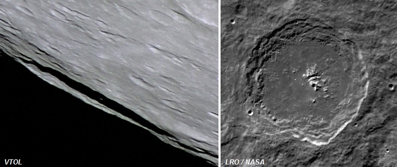 Composição fotográfica: A cratera HAUSEN fotografada por VTOL e fotografada em voo orbital pela sonda lunar robótica LRO da NASA.
